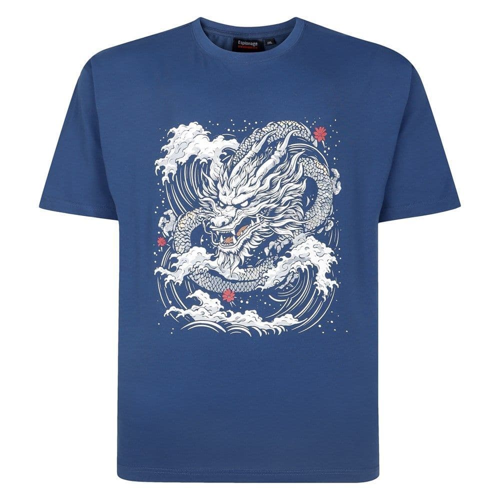Espionage T438 Dragon Print Tee Dark Blue