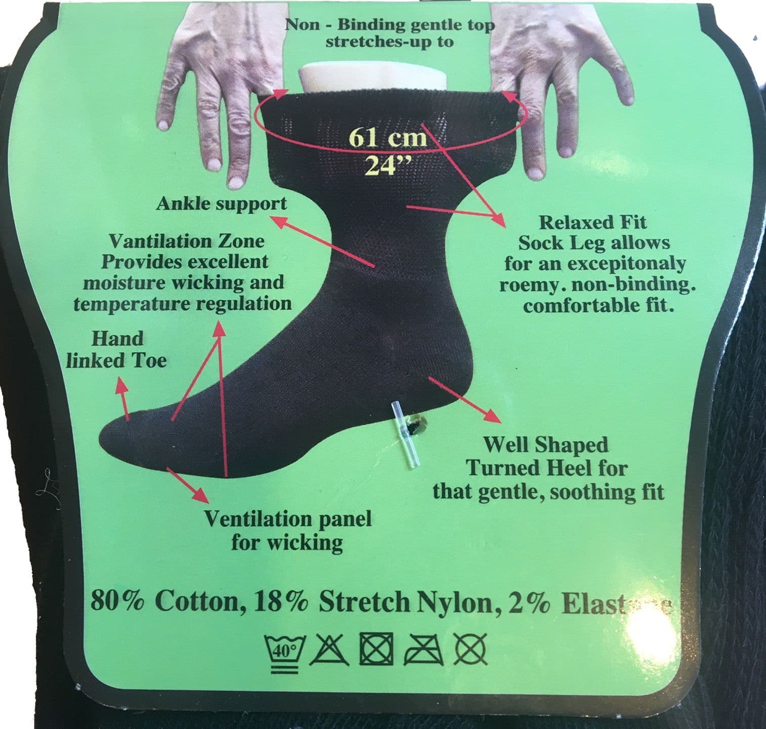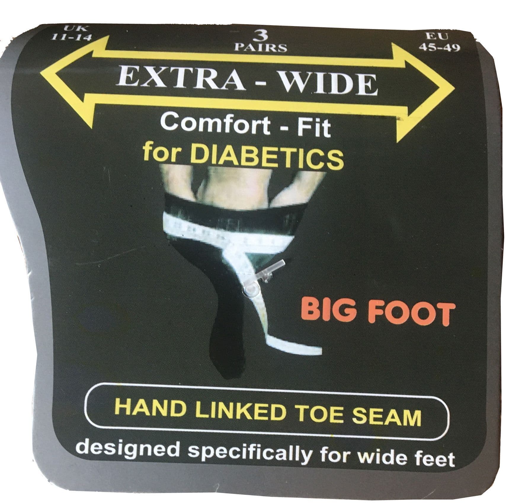 - Extra Wide Roomy SE087 Diabetic Big Foot Sock 3 Pair 11-14 Mixed Dark Colours. Black, Dark Grey and Navy.